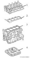 The cylinder block assembly forms the engine's core structure and includes the following key components: the cylinder block, cylinder head, head gasket, oil pan, valve cover (commonly known as the rocker cover), and the main bearing caps.