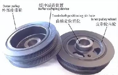 The crankshaft pulley serves as the power source for driving other engine accessories. It transmits power through the drive belt to components such as the generator, water pump, compressor, and power steering pump. It is equipped with a damping or vibration reduction device to mitigate the impact vibrations generated during engine operation.
